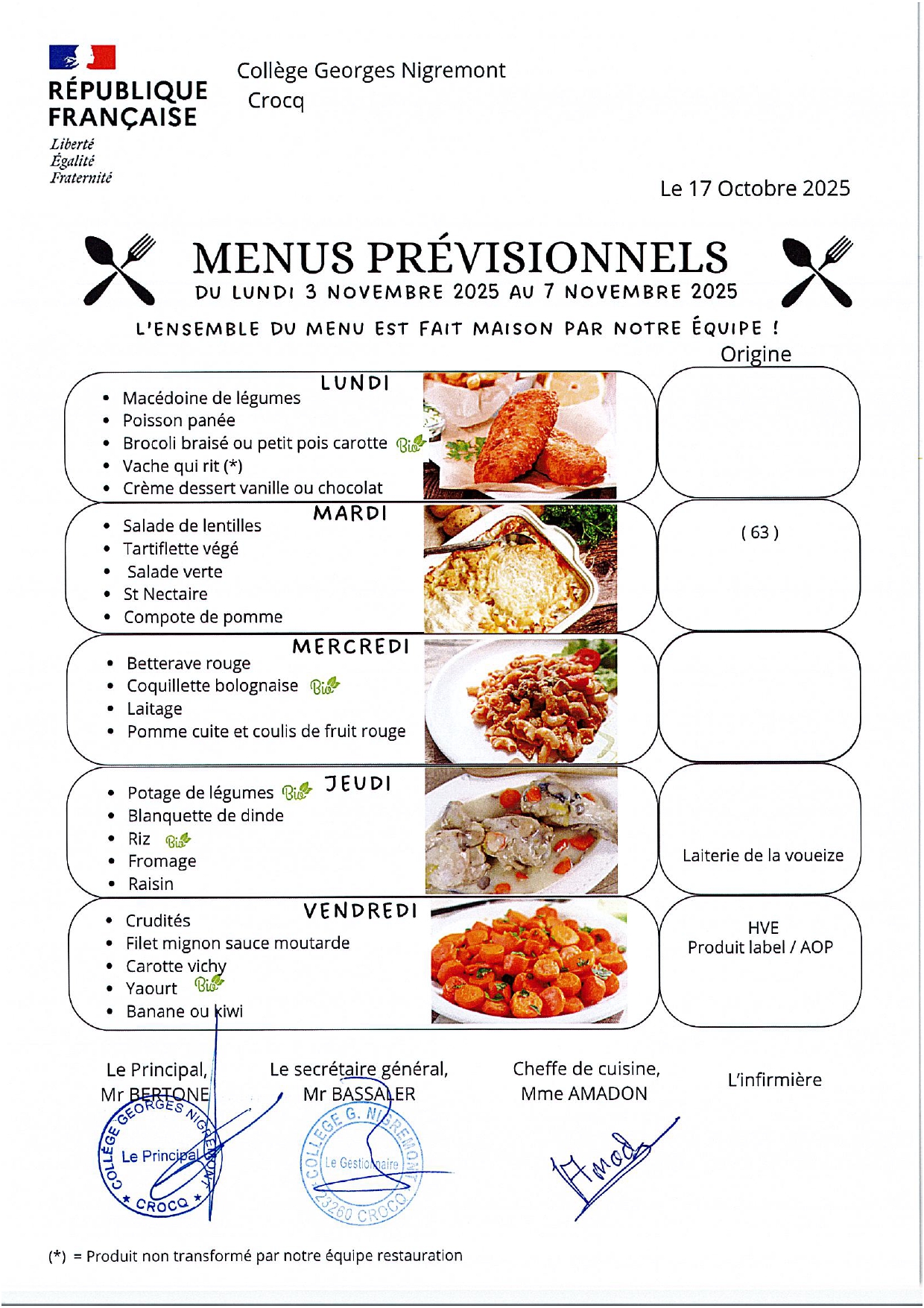 Au menu cette semaine
